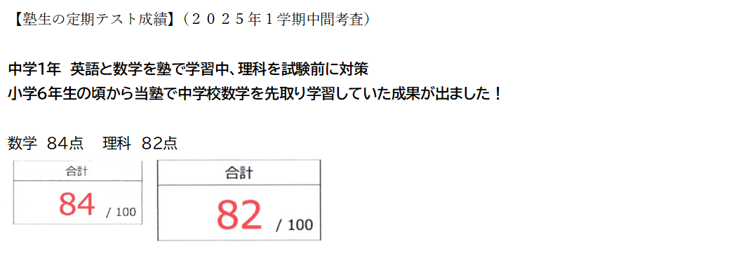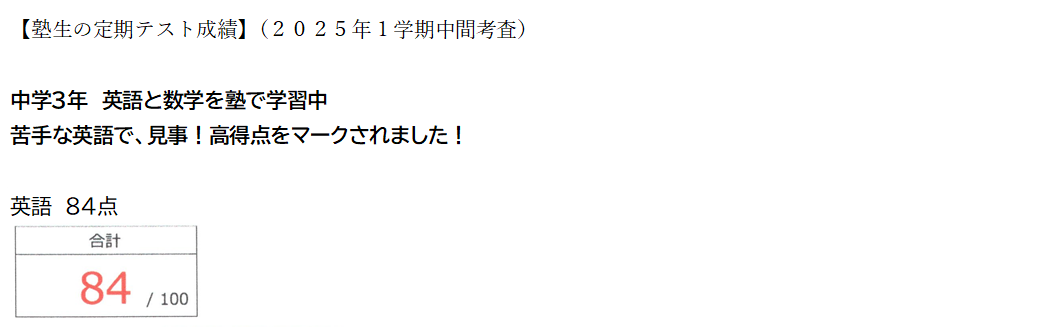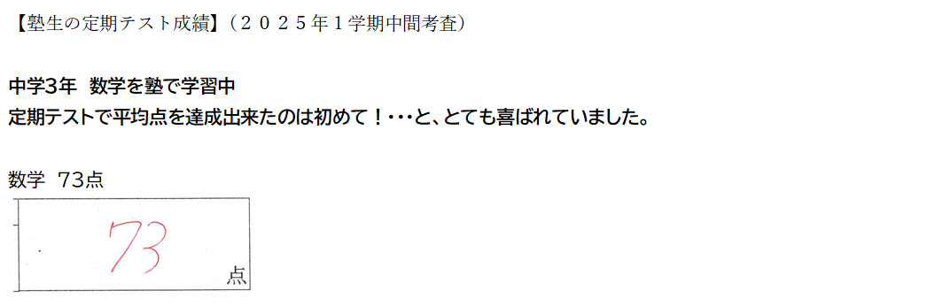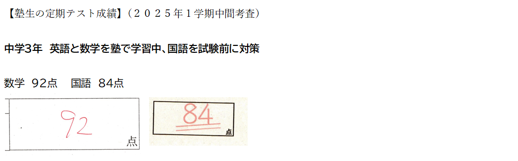 ご本人と保護者の方にご承諾をいただいた上で、塾生の頑張り (成績) を幾つか紹介させていただきます。